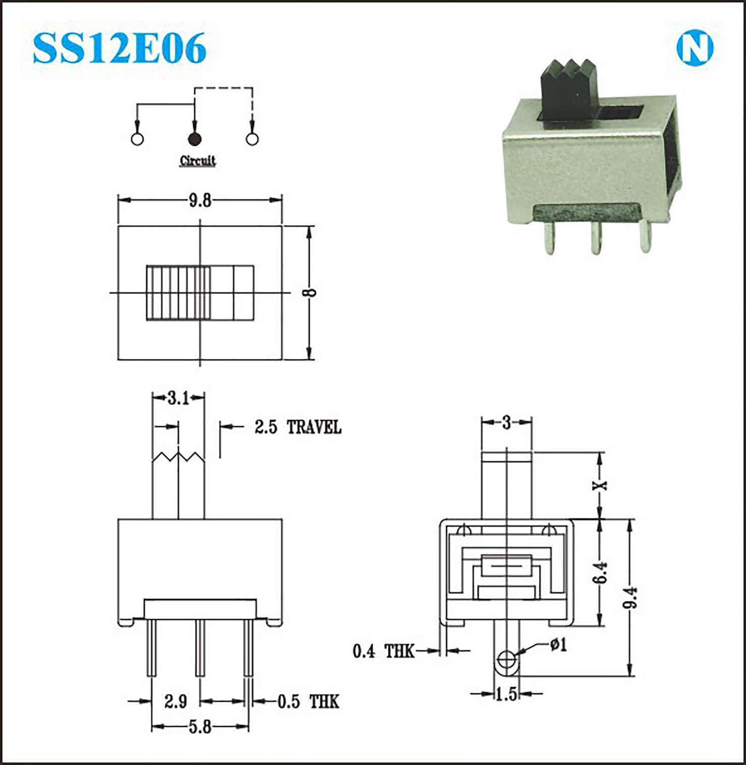 接触电阻:100MΩat 500V DC Rating
