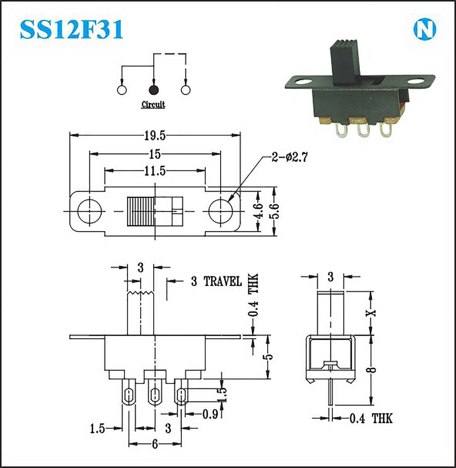 接触电阻:100MΩat 500V DC Rating
