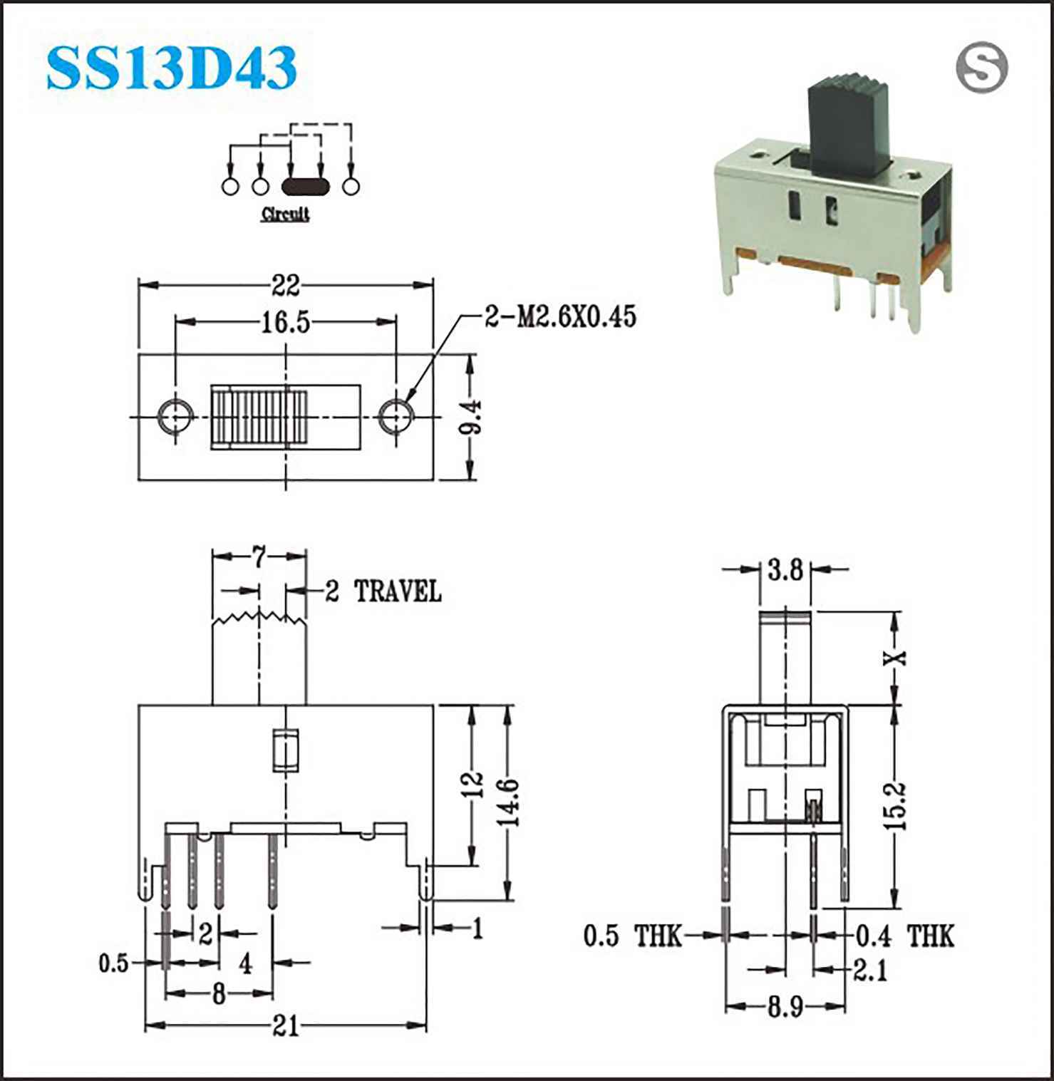 接触电阻:100MΩat 500V DC Rating