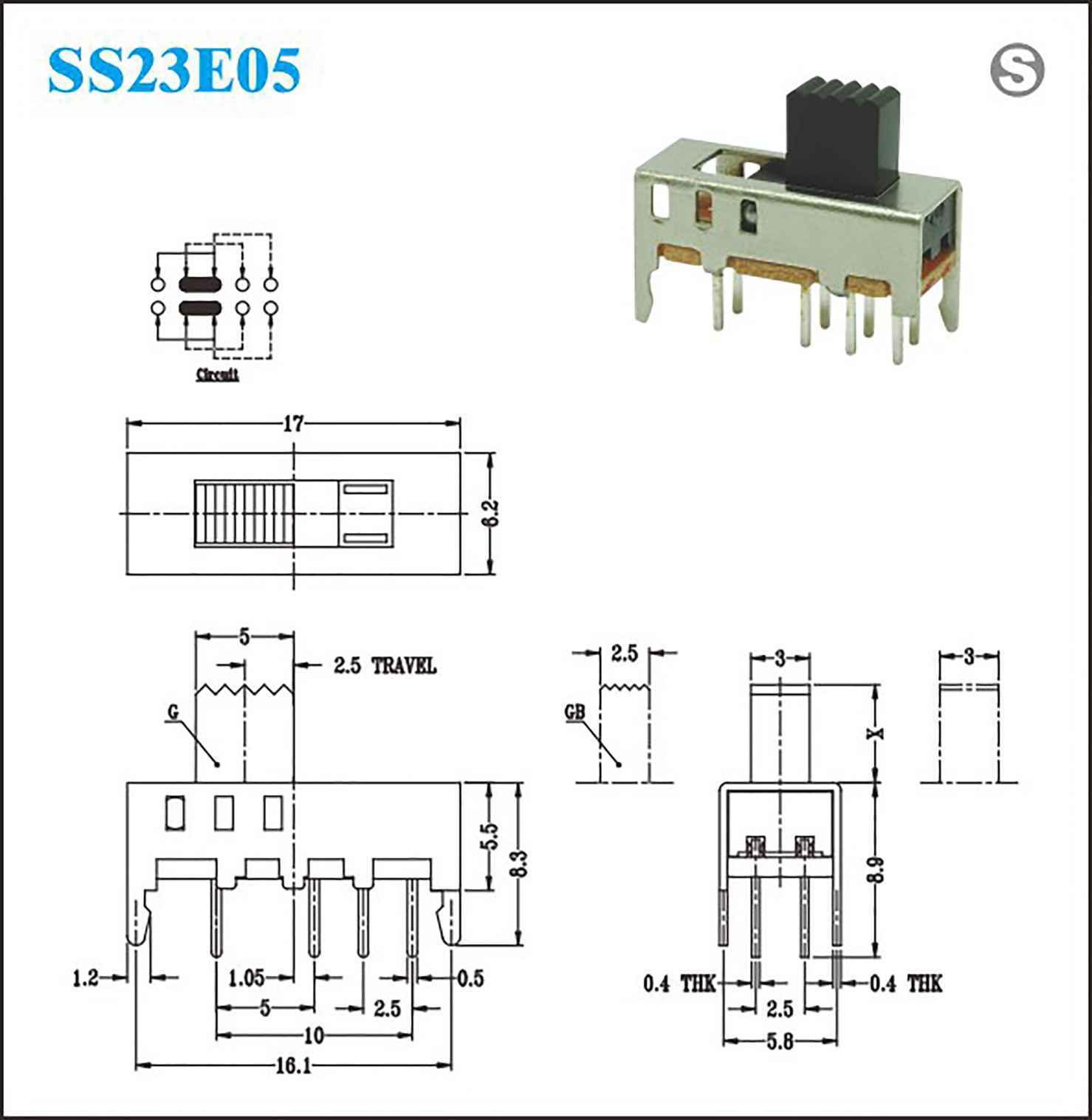 接触电阻:100MΩat 500V DC Rating