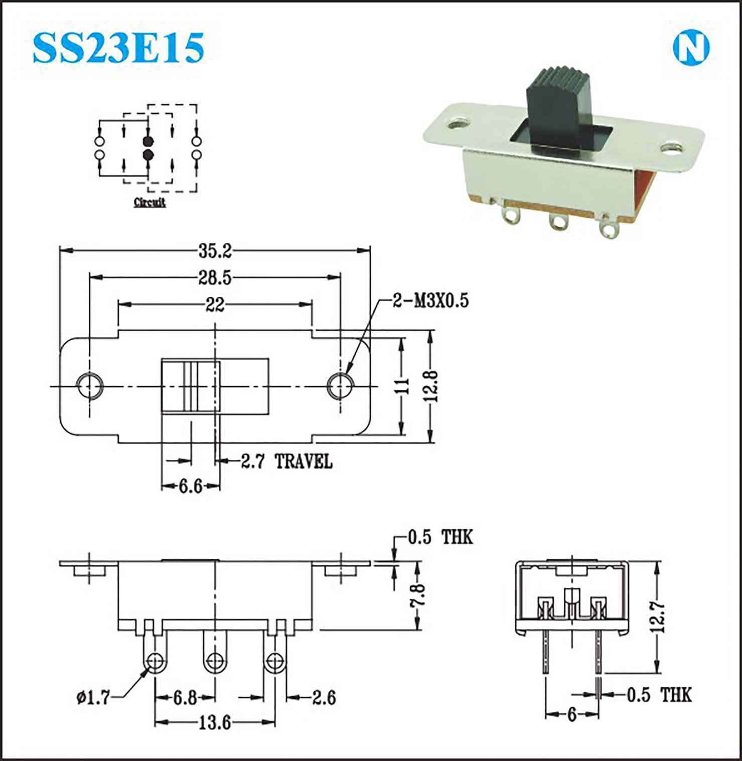 接触电阻:100MΩat 500V DC Rating