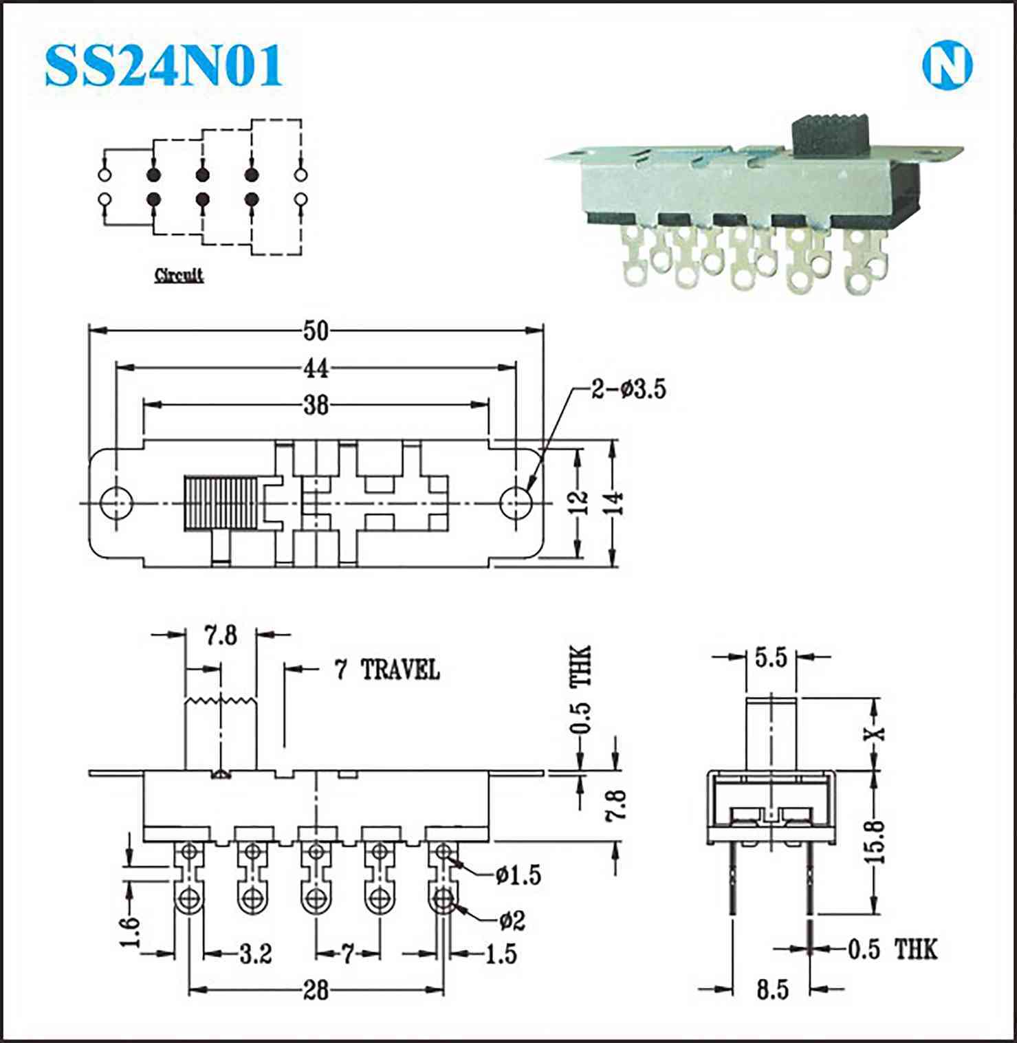 接触电阻:100MΩat 500V DC Rating