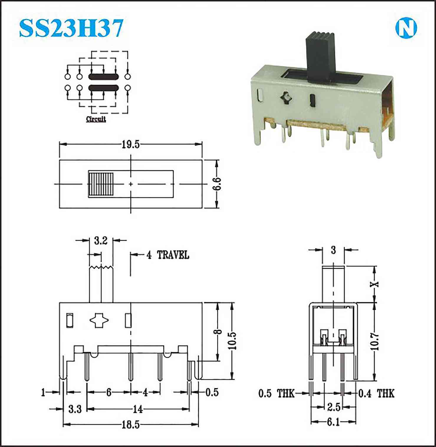 接触电阻:100MΩat 500V DC Rating