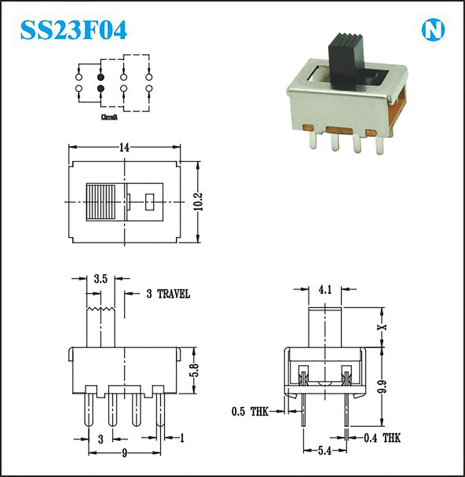 接触电阻:100MΩat 500V DC Rating