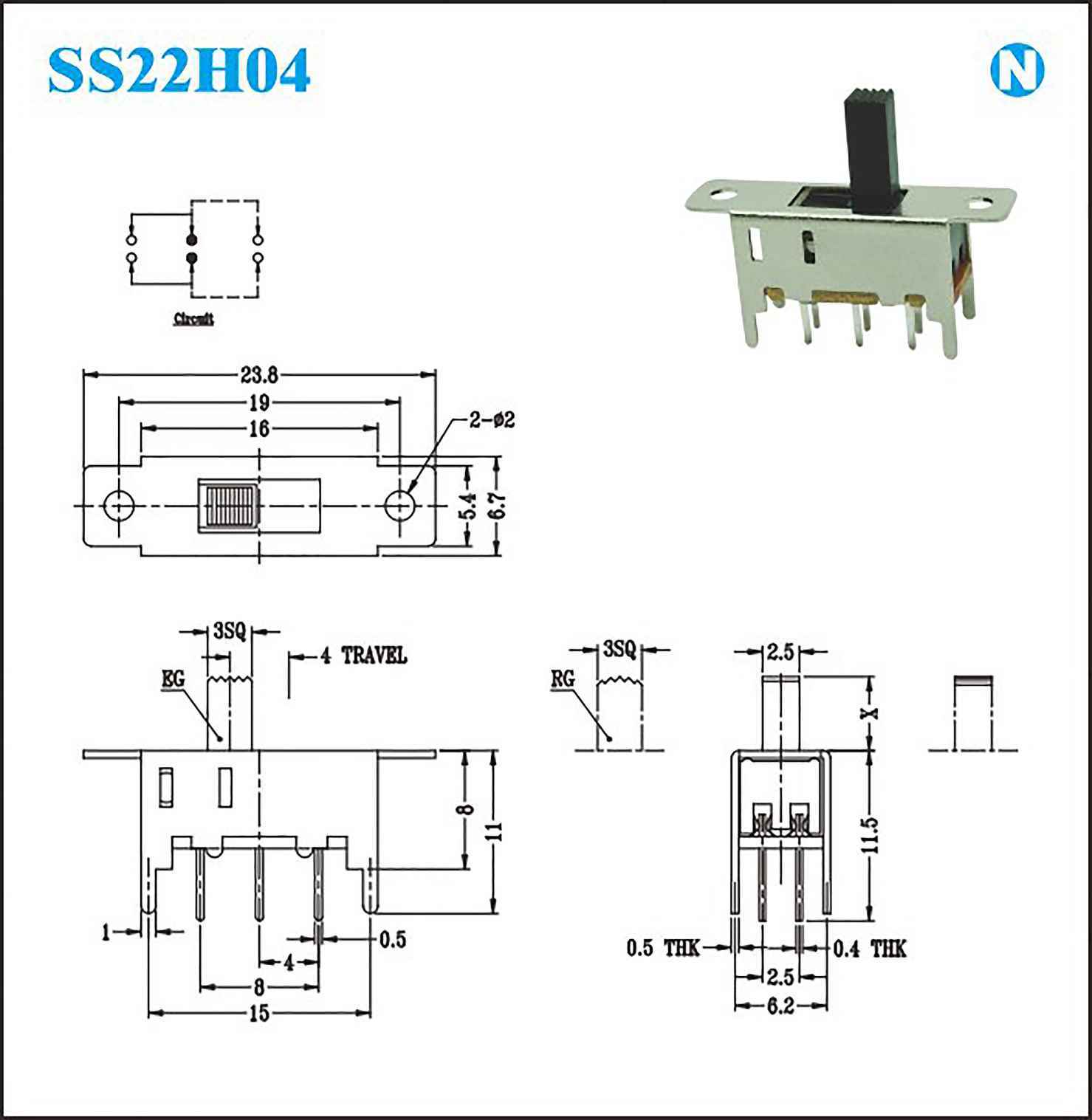 接触电阻:100MΩat 500V DC Rating